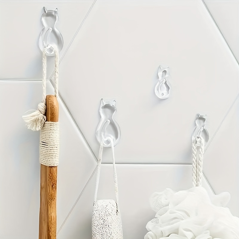 10pcs Cat Tail Sticky Hooks Wall Mounted - Transparent Waterproof No-Drill Adhesive Hooks with Cute Cartoon Cat Design, Space-Saving Organizer for Entryway, Bathroom, Bedroom, Dorm